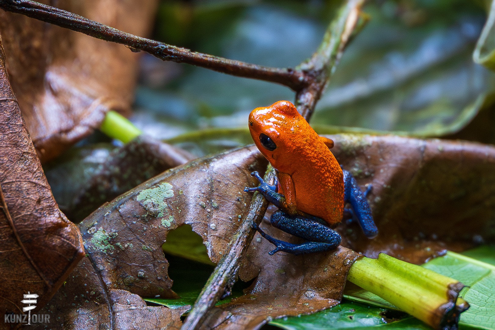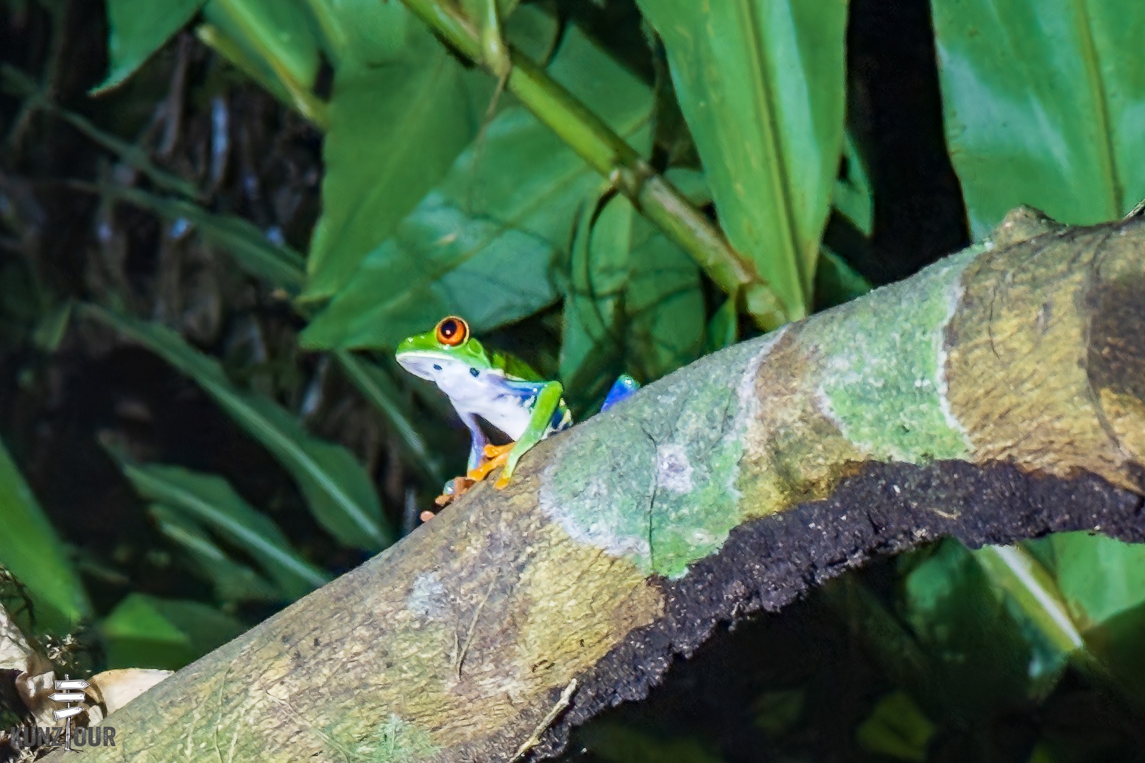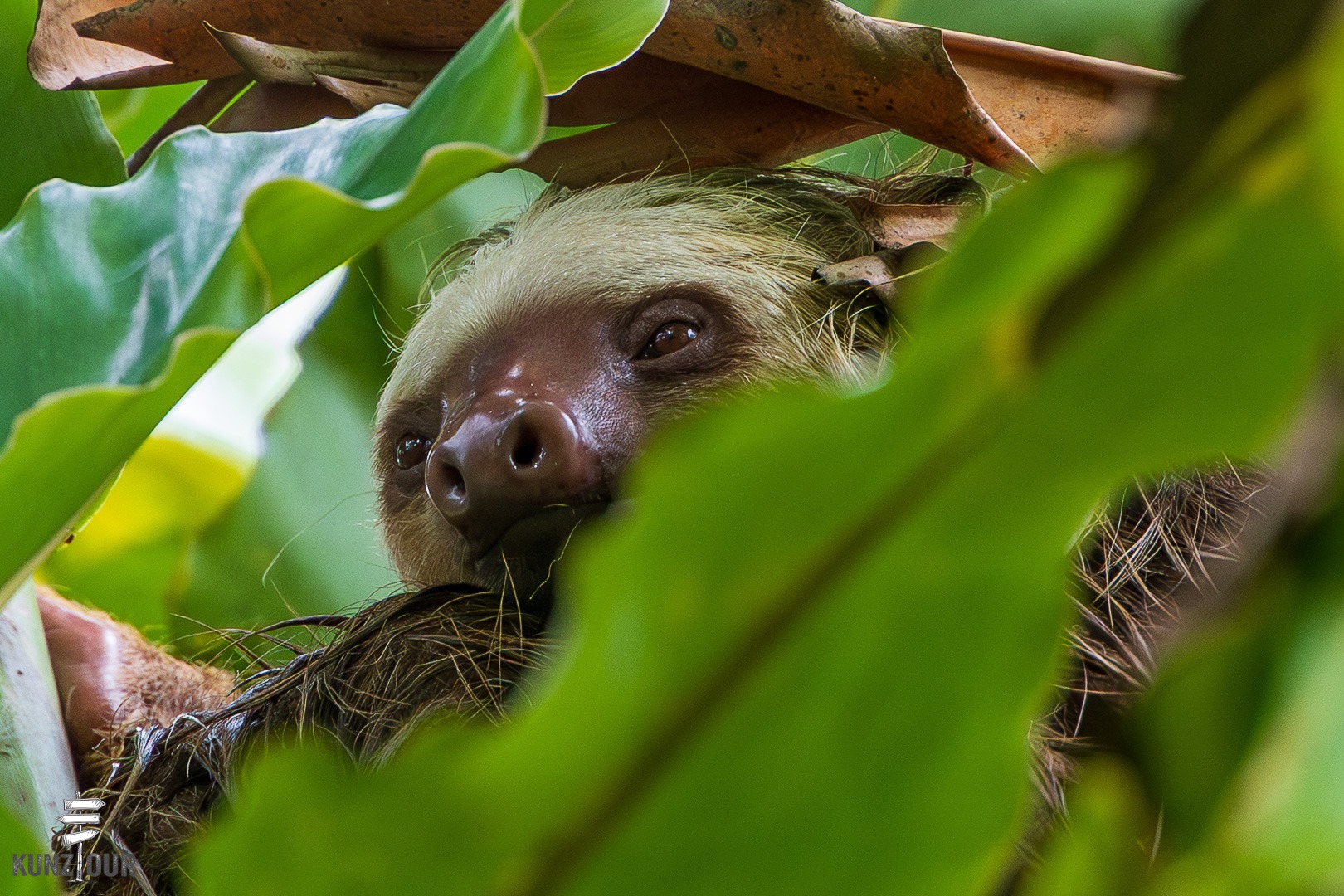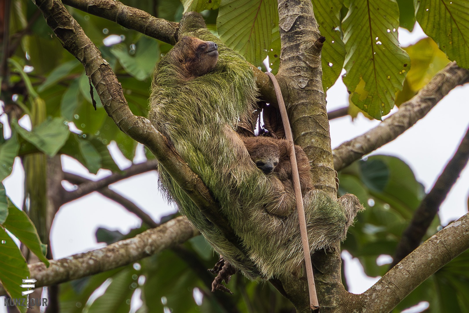 Wir durften bei ihm im Zelt übernachten und erhielten am nächsten Morgen eine sehr informative Privattour durch das Gelände, bei der wir viel über die Tier- und Pflanzenwelt erfuhren. Dabei sahen wir eine Vielzahl unterschiedlichster Vögel, sieben Faultiere (Zwei- und Dreifinger) und endlich zwei weitere Arten der einzigartig farbenfrohen und winzigen Frösche – den Rotaugen- und den Bluejeans-Pfeilgift-Frosch.