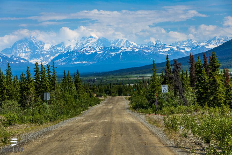 Wir fuhren die Haines Road bis zu deren Ende und bogen in dem Örtchen “Haines Junction” wieder auf den Alaska Highway ein. Wir gönnten uns im örtlichen Café ein paar süße Leckereien, übernachteten anschließend am Ufer des größten Sees des Yukons und fuhren am nächsten Tag die immer schlechter werdende Straße weiter. Unser Ziel: Alaska! Klang komisch, denn wir hatten ja auf dem Herweg schon zwei Abstecher nach Alaska gemacht. Und so viele Grenzüberquerungen in so kurzer Zeit hatten wir auch noch nie. Langsam wurde es anstrengend. Aber die bevorstehende sollte wider Erwarten die Entspannteste sein, die wir jemals hatten. Der Grenzer kam aus dem Grinsen gar nicht mehr raus als er unsere deutschen Ausweise sah, fragte uns wie Deutschland aktuell überleben würde, wo doch alle Deutschen hier wären, und hieß uns herzlich Willkommen. So locker und nett wurden wir wirklich an noch keiner Grenze begrüßt. Tja und dann waren wir mit unserer Vandy einfach mal in Alaska. 💪