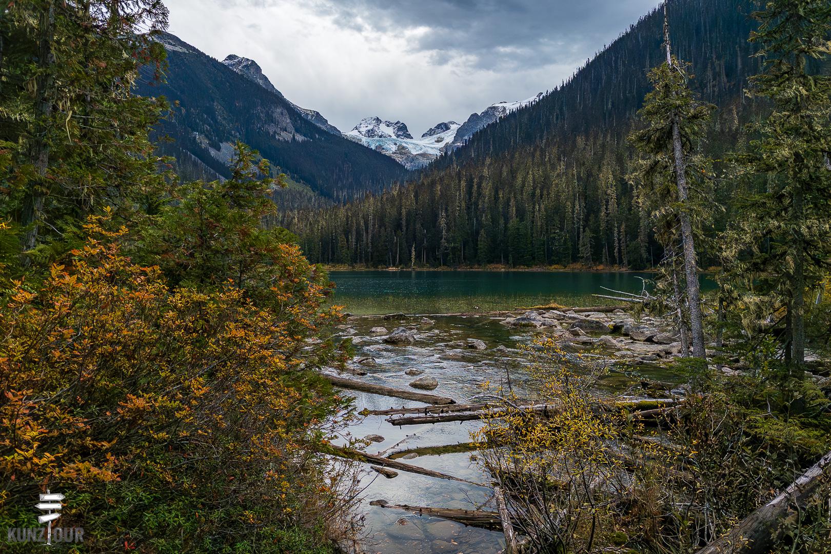 Routenmässig schlossen wir unseren Bogen in der Kleinstadt Lilloet, durch die wir bereits Anfang Juni gekommen waren. Im nahegelegenen Joffre Lakes Provincial Park unternahmen wir eine schöne Wanderung zu drei Gletscherseen, die uns im Frühling verwehrt blieb, da man hierfür vorab einen Tagespass reservieren muss. Schon verrückt, dass man sich für eine Wanderung anmelden muss… Aber anscheinend wird man den Menschenmassen hier wohl im Sommer sonst nicht mehr Herr 😳.