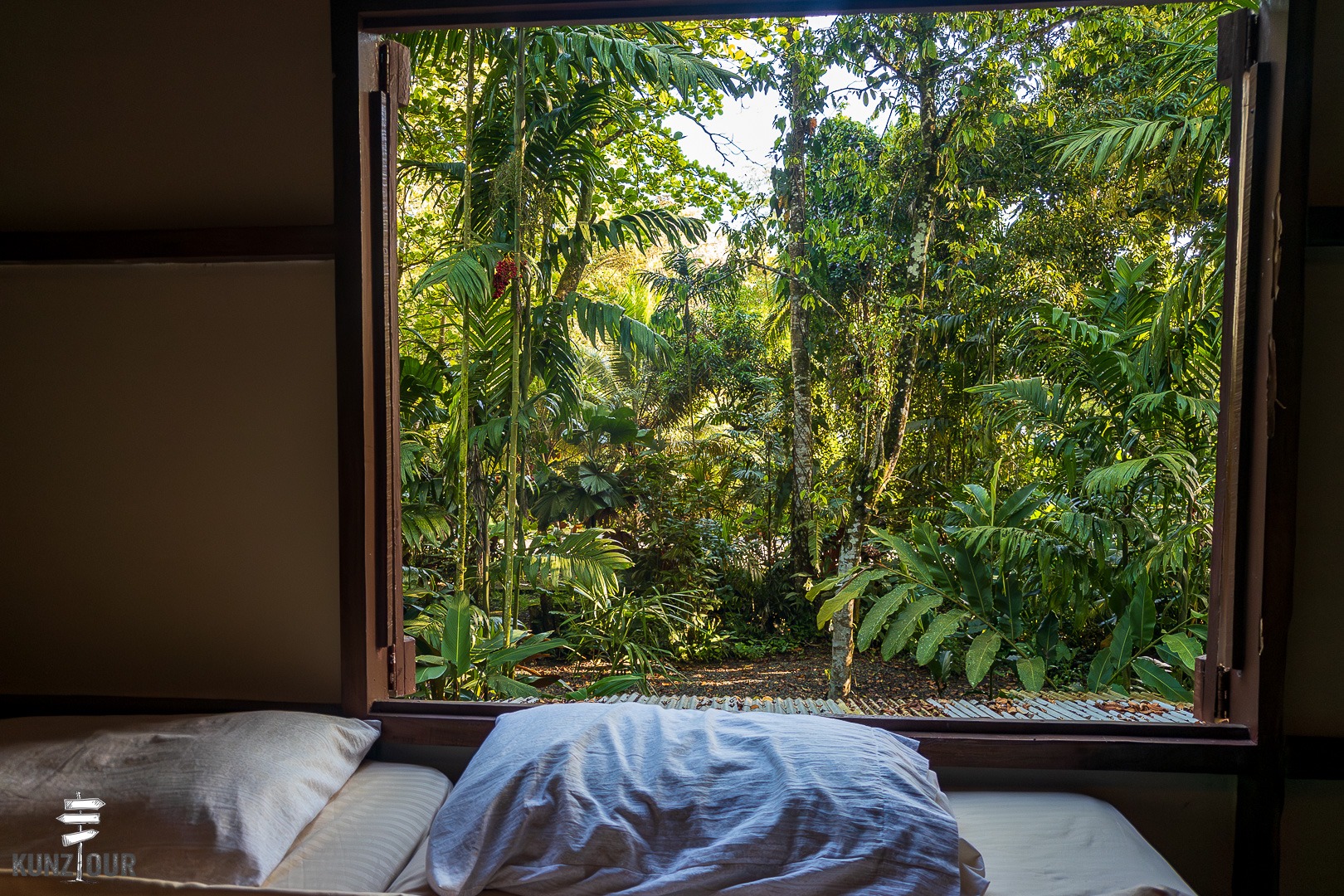 Wir checkten in unserer Unterkunft ein – eine kleines, sehr offen gestaltetes Häuschen mit vier Zimmern, umgeben von dichtem Grün und vielen Wildtieren. Die Brüllaffen sorgten zuverlässig dafür, dass wir nicht verschlafen und das „Hof-Aguti“ schaute jeden Tag zum Frühstück vorbei.