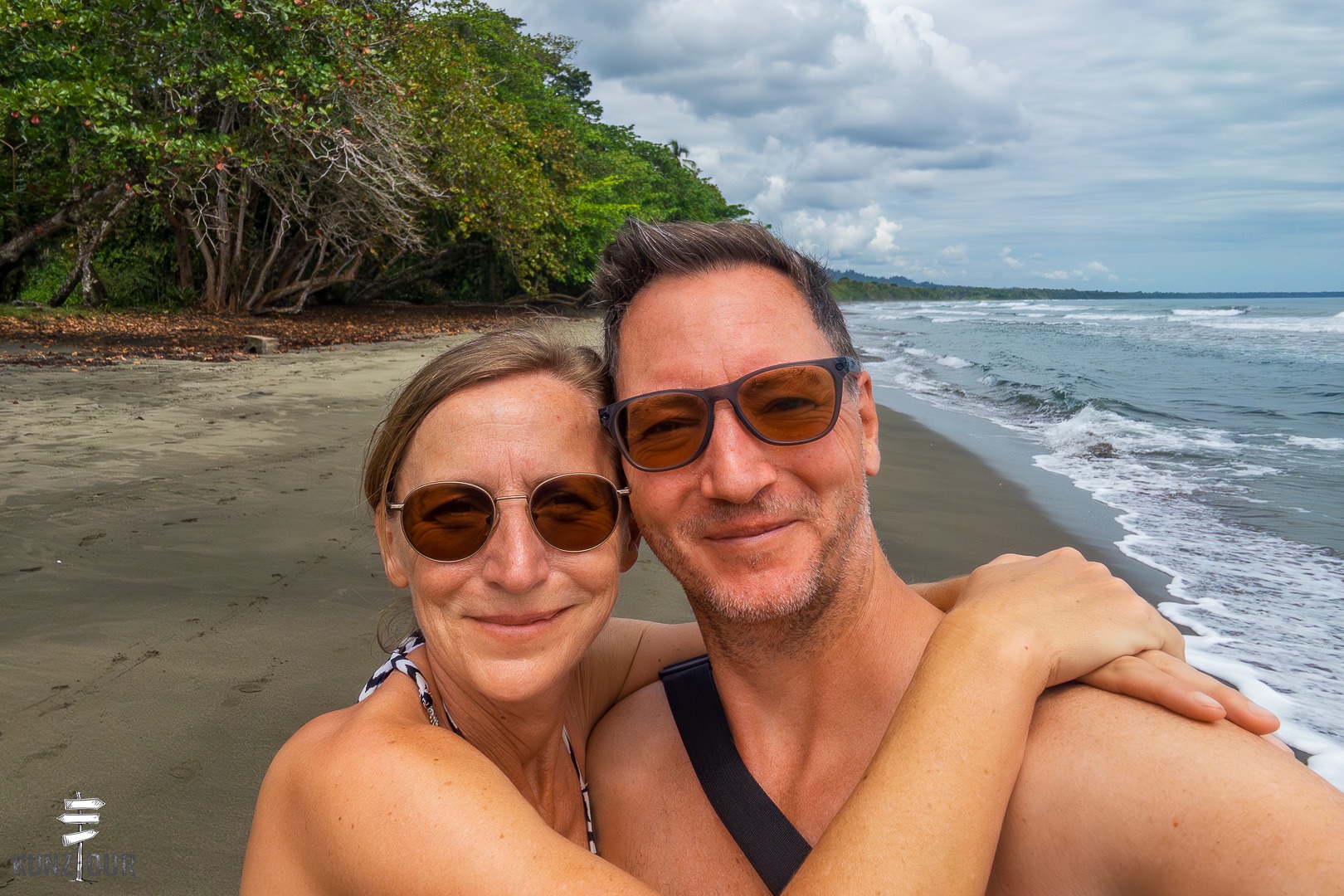 Kurz mit dem Boot aufs Festland übersetzen, 40 Kilometer mit dem Bus an die Grenze zu Costa Rica und nach der Einreise noch 24 Kilometer mit dem Bus weiter zu unserer Unterkunft in der Nähe von Puerto Viejo. Ne schnelle Nummer dachten wir uns – haben wir doch nicht mit der karibischen „Gemütlichkeit“ gerechnet. Funktioniert alles, halt nur etwas langsamer 🤣.